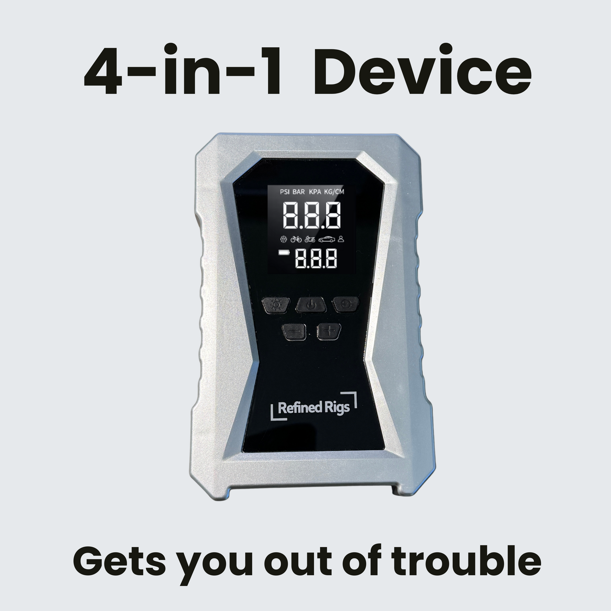 Your roadside rescue solution, combining jump-starting power, tire inflation, phone charging, and emergency lighting in one rugged device.